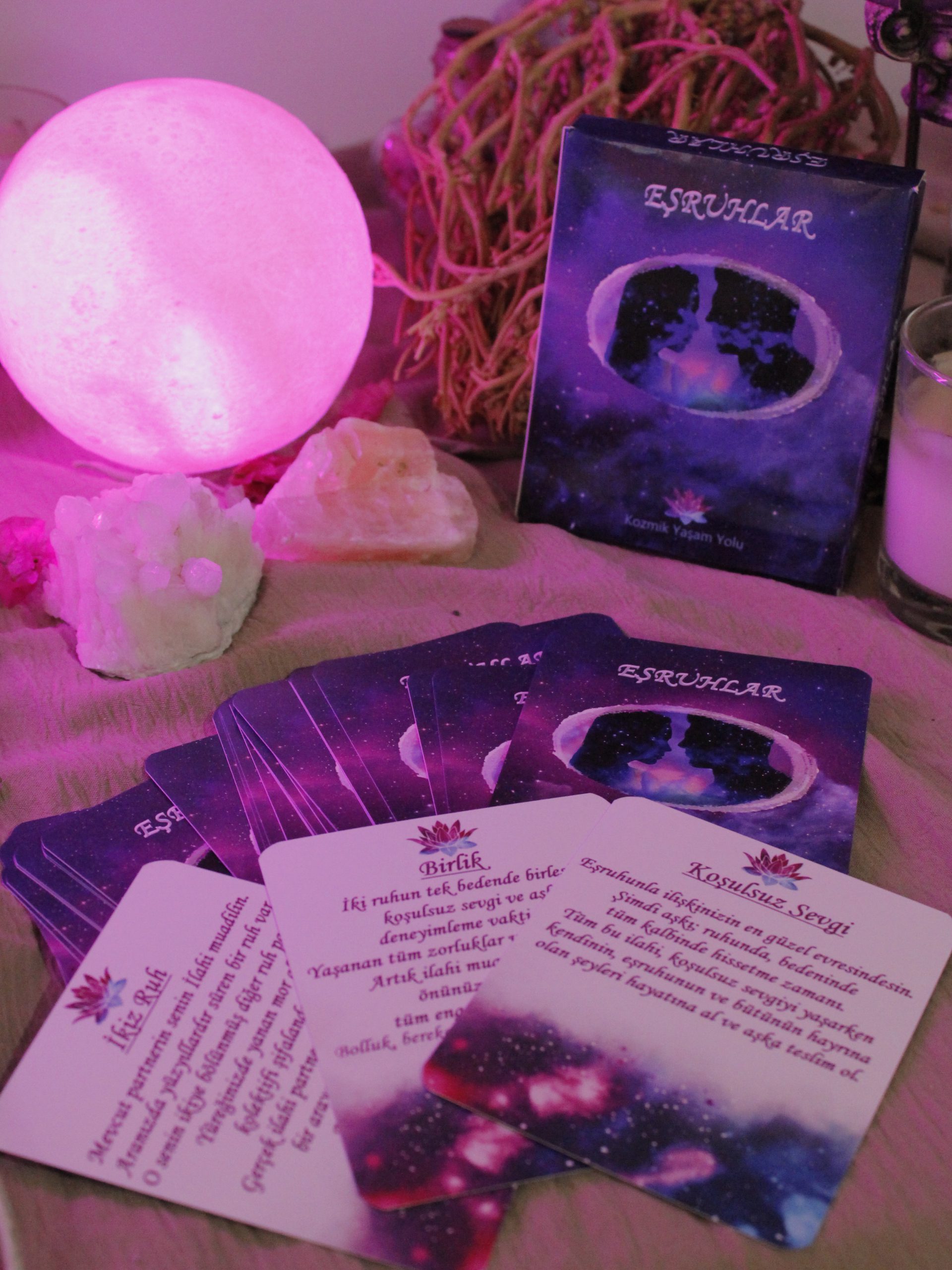 Toplam 33 karttan oluşan bu tarot destesi sizlere; içinde bulunduğunuz ruh eşi ilişkisi hakkında rehberlik edecek; ilişki modelinizle alakalı bilgi, tavsiye, uyarı ve yönlendirmeler yapacaktır. Şifalandırmanız gereken noktaları sizlere gösterip Eşruhunuzla birliğe giden yolda engellerinizi kaldırmanız adına size rehberlik edecektir. Eşruhluğa dahil geniş yelpazeye sahip bu deste hem günlük tavsiyeler hem de ilahi boyuttan bilgiler, ilişki modeliniz hakkında rehberlik içermektedir.